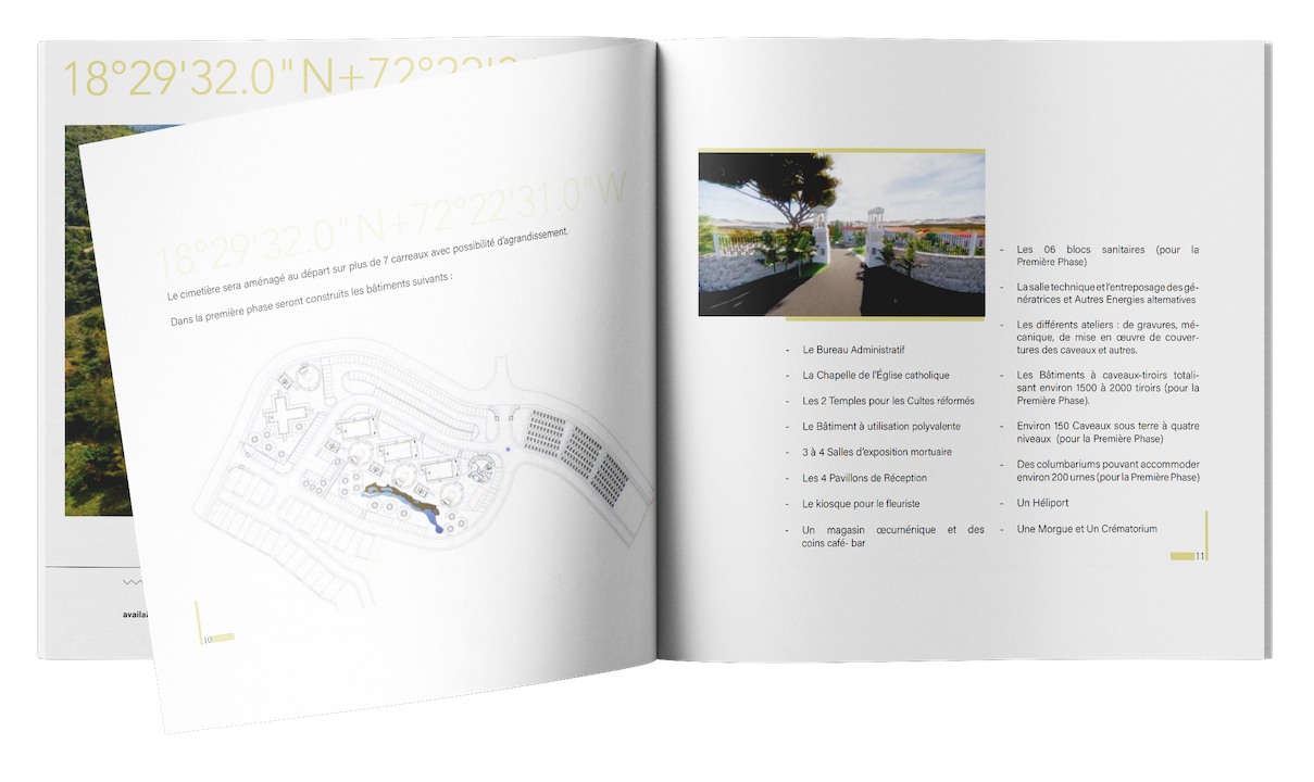 La construction de ce cimetière, dénommé Parc de la Concorde, aura lieu en montagne, à Laboule 12, dans la zone de Tara’s. La route qui y conduit est complètement bétonnée avec une canalisation de choix. L’aménagement de cette zone a été fait très professionnellement, reflétant la vision du développeur, M. Jean Mossanto Petit, qui y voyait un espace vert bien aménagé, indépendant ou les riverains n’auraient aucunes raisons de sortir de cette zone autre que le boulot. Tous les services primaires et même secondaires seraient disponibles, contribuant ainsi à valoriser davantage les propriétés de la zone. La construction d’un cimetière à l’intérieur de ce développement découle d’un choix stratégique en complémentarité avec la vision du développeur.
