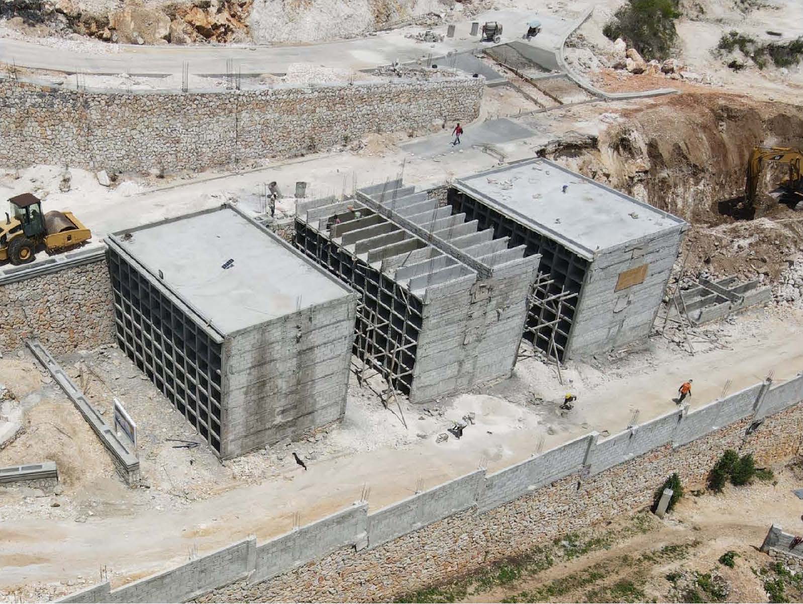 Plusieurs bâtiments sont en construction et seront en grande partie achevée avant le démarrage de l'exploitation commerciale.